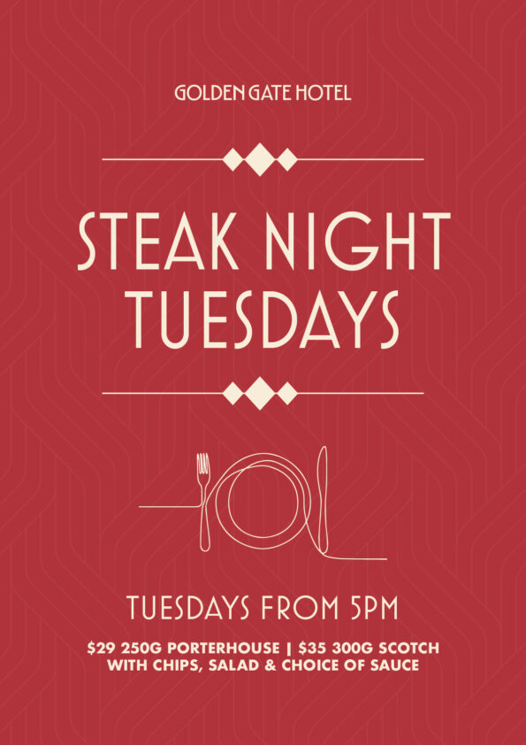 Established in 1853, the Golden Gate Hotel is an iconic pub that offers a contemporary dining experience with the relaxed and friendly atmosphere of a traditional pub. Whether you’re after the place to catch up for a casual drink, party with friends or hold that special occasion, our team are dedicated to providing you with a memorable experience.
